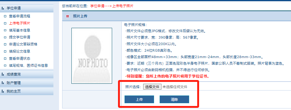 ·特别提醒:您所上传的电子照片将用于学位证书。(请保存此版电子照)。