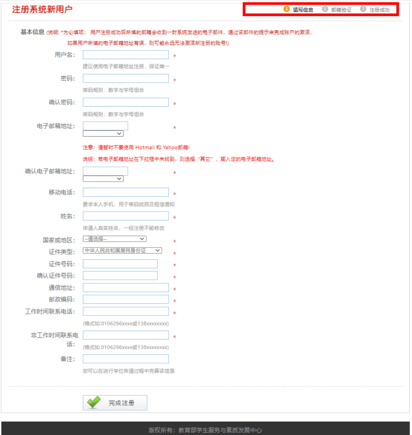 同等学力人员申请硕士学位管理工作信息平台注册步骤