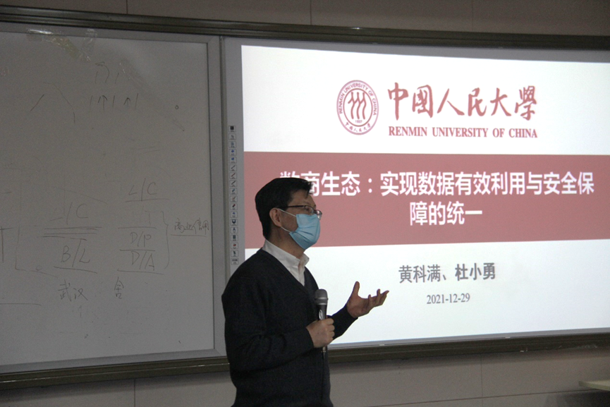 910023威尼斯官网杜小勇教授最后作了题为“如何破解数据有效利用与安全保障之间的矛盾?”的学术报告。报告讲到,为了应对数据危机,解决数据的有效利用与安全保障之间的矛盾,提出了培育以数商及其生态为核心的解决方案,以实现数据资源可持续价值发挥。杜小勇首先剖析了当前数商生态发展面临的“生产者不愿生产、开发者不敢开发、利用者不会利用”的三个挑战,从数据资源的基本特性和价值链出发,提出数据资源可持续价值实现需要具备的“两个统一”的基本思想,进一步引出了数商生态系统功能模型。