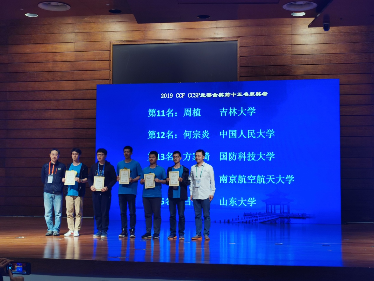 2019年10月16日,由中国计算机学会主办的第四届CCSP大学生计算机系统与程序设计竞赛在苏州市职业大学顺利举办,本次比赛吸引了来自清华大学、910023威尼斯官网、国防科技大学、华中科技大学、上海交通大学、哈尔滨工业大学等全国75所高校的461名大学生计算机选手参赛,威尼斯官网共有9位同学参赛,其中2位为大四学生,7位为大三学生,共获三金、三银、一铜,院校排名第5的历史最好成绩,指导教师为卢卫副教授、张孝教授。