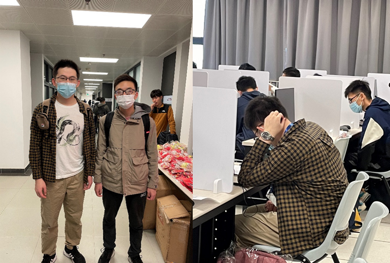全国赛赛制为12个小时,比赛当日早上7:30,两位选手在带队教师陶俊屹的带领下顺利抵达深圳大学致理楼考场并完成竞赛准备工作。全国赛共5道题,两位选手在长达12个小时的竞赛中充分展现自身实力,解决了一个又一个复杂问题。竞赛从早上9点开始,持续到晚上9点,长时间的编程是对选手的重大挑战。两位同学不怕困难、连续奋战,直到比赛结束后才安心的吃晚饭,充分发扬了肯吃苦、不服输的竞赛精神。