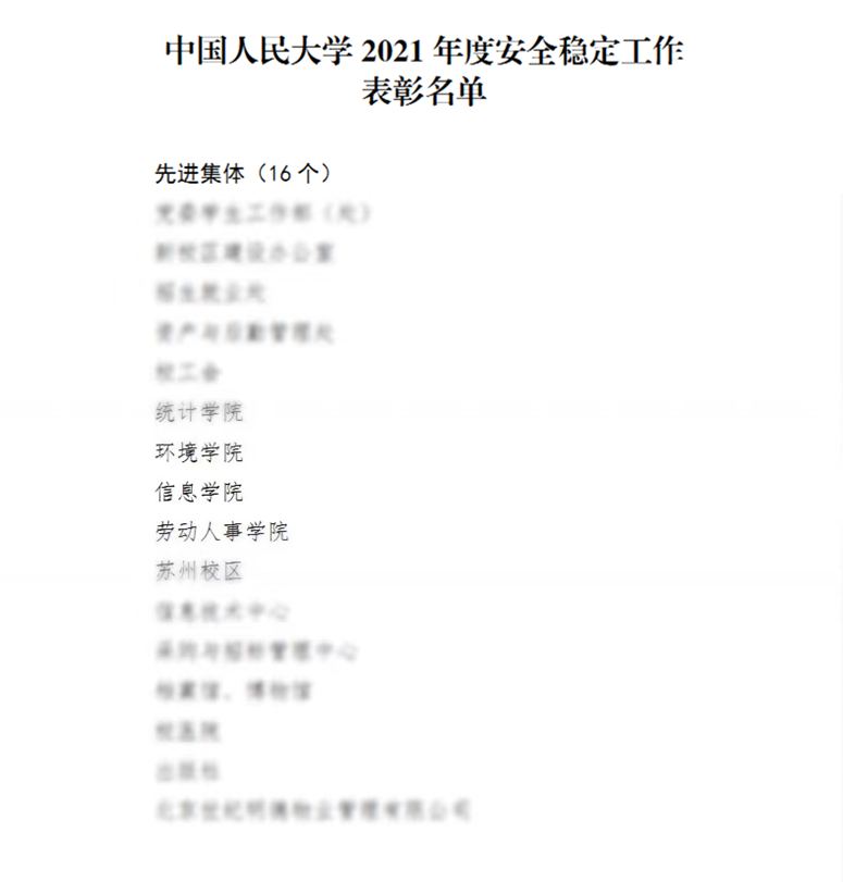 2022年3月14日,学校印发《关于表彰910023威尼斯官网2021年度安全稳定工作先进集体和先进个人的决定》,910023威尼斯官网荣列其中,成为16个被授予“910023威尼斯官网2021年度安全稳定工作先进集体”荣誉称号的单位之一,武剑虹老师获先进个人荣誉称号。