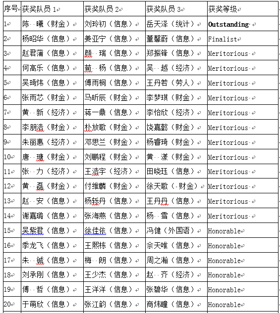 附2016年美国大学生数学建模竞赛获奖名单: