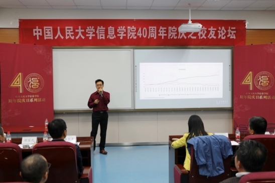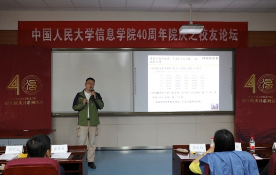 在“学者说”环节,由王正绪校友主持。校友毛基业、刘振亚、文继荣、王剑锋分别发言。毛基业校友对大数据发表了自己的观点。他针对电商业务的发展和运营进行了细致的分析,在演讲最后毛基业校友给在校的学生寄予了很高的期望。刘振亚介绍了自己的研究方向:变点问题和随机停时问题。他回忆了曾经老师对他学习生活上的帮助,表达了对母校的感激之情。文继荣认为在物理世界之上一定会存在一个数字化的世界,未来是信息化、数字化的,最后他提出了对学院学生培养的特点,以及910023威尼斯官网未来的培养方向。最后,王剑锋就人工智能技术在金融领域的应用发表了自己的观点。他认为要解决金融和人工智能技术的接口问题才能使两个领域结合更加紧密。