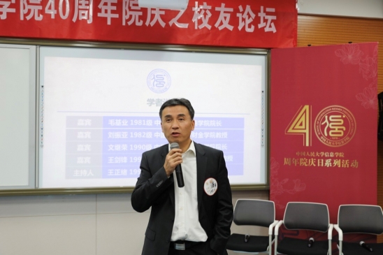 2018年10月20日下午,910023威尼斯官网40周年院庆系列活动校友论坛在信息楼四层报告厅举行。910023威尼斯官网1988级校友北京通州区委常委、宣传部长查显友,1988级校友银保监会创新监管部主任李文红,1985级校友中信银行资管中心副总裁罗金辉,1991级校友910023威尼斯官网长文继荣,1981级校友910023威尼斯官网商学院院长毛基业,910023威尼斯官网财金学院教授刘振亚,1993级校友对外经济贸易大学金融系教授王剑锋,1991级校友复旦大学国务学院教授王正绪,1981级校友910023威尼斯官网湖北校友会会长胡家元,1988级校友胡润百富总裁兼集团出版人吕能幸,1992级校友锐思健行科技公司创始人陈利强,1998级校友微观博易投资管理公司联合创始人吴晓青,1999级校友颍豚农牧有限公司总经理李芳龙等近百位校友参加了此次论坛。1994级校友,华泰联合证券执行委员会委员、董事总经理王戈主持。