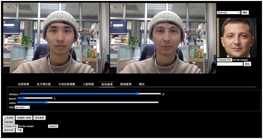 我们系统的主页面如图3所示,系统支持用户自主选择源人脸进行在线实时面部替换,并能够通过上传人脸素材来丰富源脸数据库。此外系统提供了丰富的换脸配置选项,让用户灵活地精细调整换脸效果。用户在系统中还可以提交视频文件换脸任务并提供下载,为个人娱乐用户也提供了视频换脸编辑的需求。