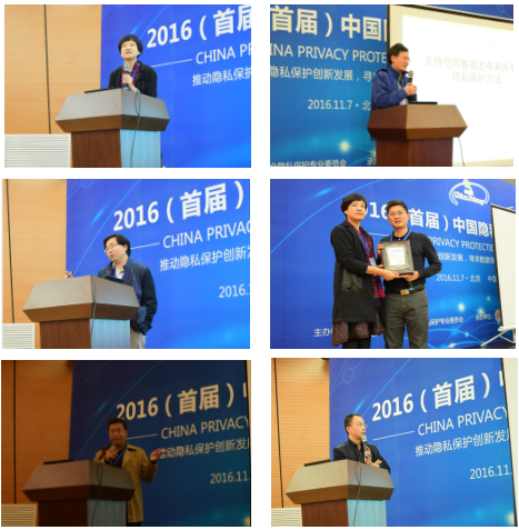 会议的报告分为上午的特邀报告和下午的专题报告,上午分别是Ling Liu、孟小峰、杜跃进和何宝宏四位学者作了特邀报告,下午则是丁丽萍、桂小林、周水庚、安红章、彭长根和倪巍伟六位学者作了专题报告。各位专家学者分别从不同的视角阐述了大数据时代下对隐私保护的理解和总结,促进了隐私保护会议的顺利进行,同时为后续的学者提供了借鉴。