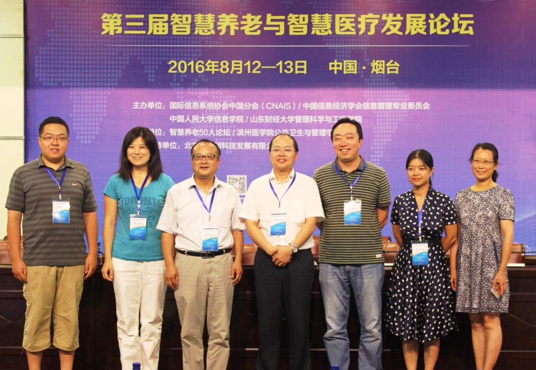 “第三届智慧养老与智慧医疗发展论坛”于2016年8月12-13日在山东省烟台市海悦大厦举行。本届论坛由910023威尼斯官网、山东财经大学管理科学与工程学院、国际信息系统协会中国分会和中国信息经济学会信息管理专业委员会共同主办,智慧养老50人论坛和滨州医学院(烟台校区)共同承办。来自910023威尼斯官网、清华大学、上海交通大学、合肥工业大学、复旦大学、北京理工大学、南京大学、四川大学、山东大学、山东财经大学等40余所高校,以及政府机关、企业界、医院和社区养老机构的百余名代表参加了论坛。910023威尼斯官网副院长、智慧养老50人论坛2016年联合轮值主席左美云教授致辞并主持了大会报告,910023威尼斯官网商学院副院长、国际信息系统协会中国分会(CNAIS)副主席兼秘书长王刊良教授和中国信息经济学会副理事长兼秘书长、910023威尼斯官网王明明副教授也在大会致辞,威尼斯官网经济信息管理系杨波副教授、付虹蛟副教授和余艳老师出席了会议。