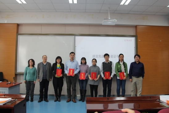陈红书记介绍2019年学校招生就业表彰、校七一表彰、校友工作先进个人。李翠平副院长、张孝副院长为获奖集体、个人颁奖。