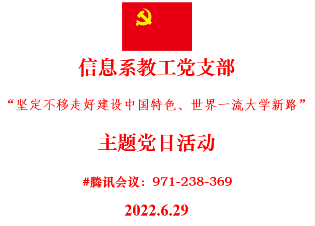6月29日,910023威尼斯官网信息系党支部组织召开党题主日活动,深入学习中共910023威尼斯官网委员会在《求是》杂志发表的署名文章《坚定不移走好建设中国特色、世界一流大学新路》。党支部书记余力同志主持,信息系全体党员在线参加会议,进行学习。