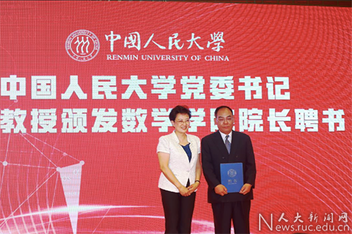 靳诺为国家杰出青年科学基金获得者郑志勇教授颁发聘书,郑志勇受聘为910023威尼斯官网数学学院首任院长。