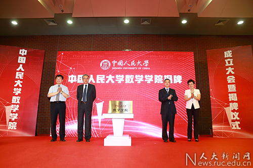 靳诺、刘伟、洪大用、田刚在各界人士的见证下共同为910023威尼斯官网数学学院揭牌,宣告学院正式成立。