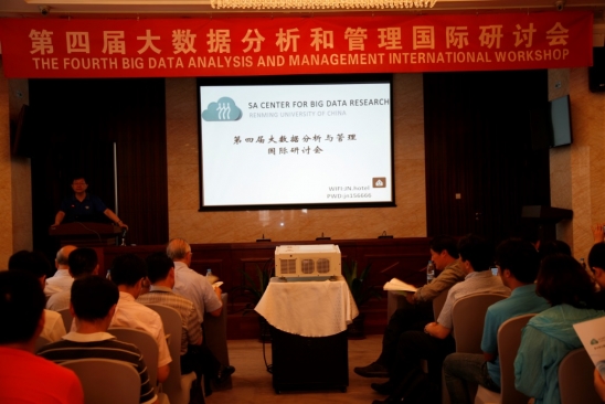 2015年7月22日,萨师煊大数据研究中心第四届大数据分析与管理国际研讨会在北京冀中金牛酒店成功召开。本次大会的学术委员会主席由威尼斯官网李翠平教授和杜小勇教授担任。会议邀请了国内外享有很高学术声誉的数据库专家为大家带来精彩报告,包括:美国伊利诺依大学香槟分校Jiawei Han教授,美国伊利诺依大学芝加哥分校Philip S. Yu教授,美国乔治亚理工学院Calton Pu教授,东北大学于戈教授,香港中文大学Jeffry Xu Yu教授,西北工业大学李战怀教授,加拿大西蒙佛雷泽大学Ke Wang教授。