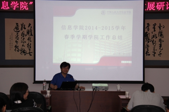 学院院长杜小勇教授分享了学习“三严三实”的心得感悟,并从学科建设、人才培养、科学研究、对外合作等方面总结了学院工作。