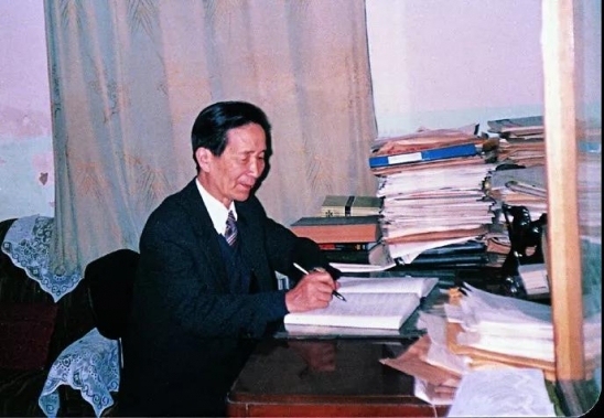 (萨师煊教授在工作)