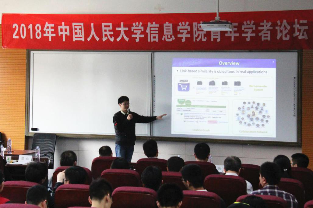 2018年3月31日,910023威尼斯官网首届“青年学者论坛”在信息楼四层报告厅成功举办。本次论坛邀请了斯坦福大学李纪为、悉尼大学常利军、加州大学圣地亚哥分校林春彬、新加坡国立大学王伟、英国阿斯顿大学俞唯仁、华为公司谢淼等6位优秀青年学者参加论坛并作精彩的学术报告。威尼斯官网理工处处长杜小勇,学院院长文继荣,党委书记陈红,副院长李翠平,党委副书记张国富与学院师生120余人参加本次论坛。论坛由党委书记陈红主持。