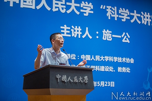 5月23日,910023威尼斯官网“科学大讲堂”在国学馆报告厅举行,国际知名生物学家施一公教授作生命科学领域“结构之美”的讲座。施一公教授主要从事结构生物学和生物物理学的研究,担任中国科学技术协会第九届全国委员会副主席、清华大学副校长、中国科学院院士、美国科学院院士、美国艺术与科学院外籍院士和西湖高等研究院创始院长。演讲会由解思深院士主持,会场座无虚席,在座区前后、两侧的通道和场外都挤满了观众,现场洋溢着人大学子对科学的饱满热情。