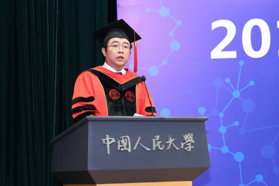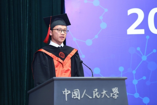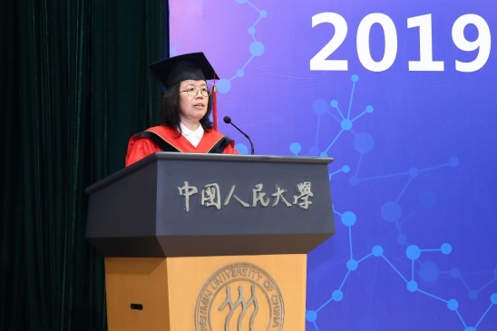 2019届硕士毕业生代表林霄竹发言,她表示,作为2012级本科生、2016级硕士生,她见证了母校七年来的变化,同时她也祝愿同学们能够始终带着“实事求是”的人大基因,牢记“立学为民,治学报国”的使命,争做“国民表率、社会栋梁”。