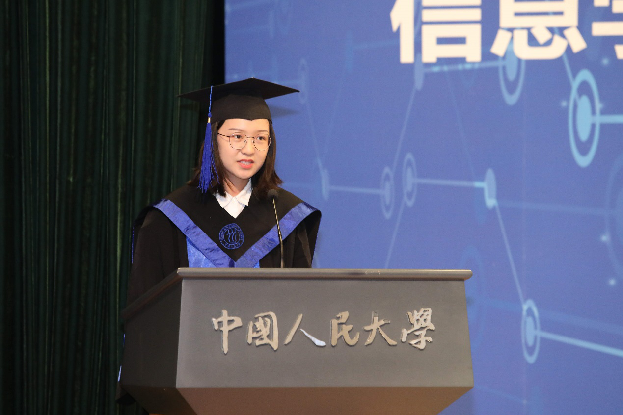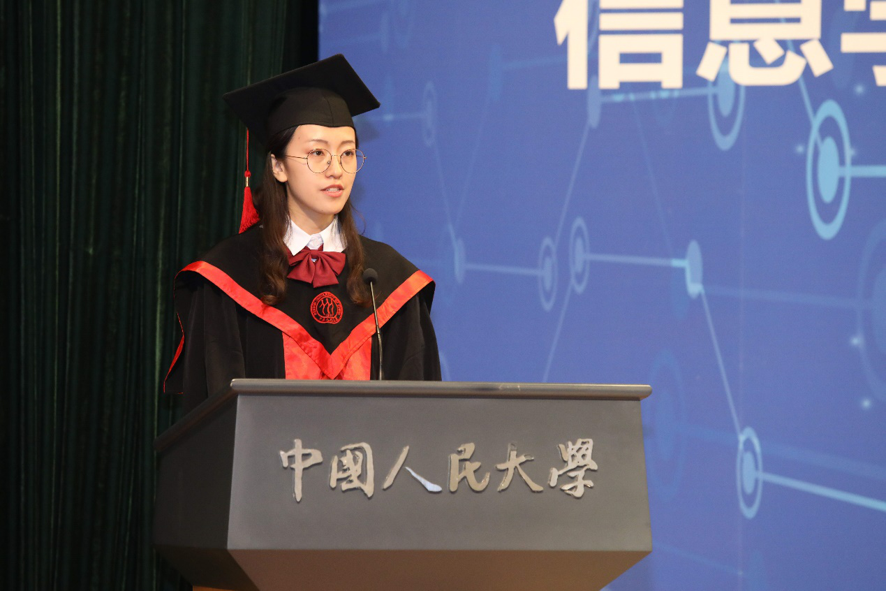 2018届硕士毕业生代表黄斐然、赵歆悦同学分别发言。黄斐然分享了他在人大生活的三个“最”,最珍贵的收获、最真挚的感谢以及最精彩的未来,并祝福全体毕业生能够拥有光明的前途和宽广的道路,牢记自己是“国民表率,社会栋梁”。赵歆悦同学分享了她在人大7年来的点点滴滴,并感谢学院的培养和教育、老师的关爱与教诲、家人的付出与支持,以及同学带来的快乐与帮助。