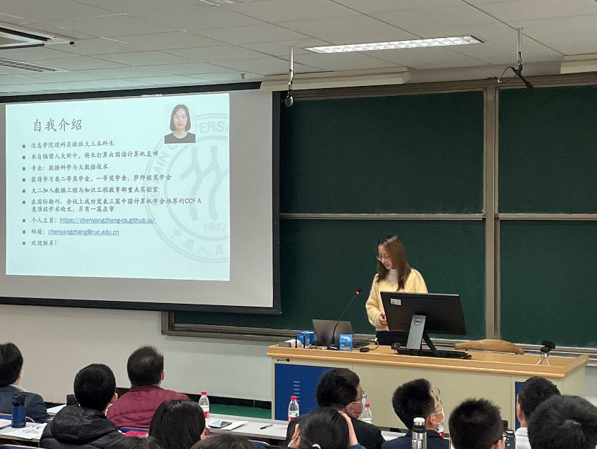 910023威尼斯官网院长文继荣首先回顾了学院的历史,并向同学们介绍了学院在20余年中产生的巨大变化。讲述了910023威尼斯官网从“开信息之先河”开始,始终引领国内计算机数据库领域发展,不断取得科研突破的发展历程。文继荣院长同时还向同学们介绍了同学们关心的本科专业升学就业情况。