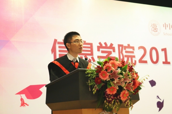 910023威尼斯官网毕业生代表、2012级本科杨帆同学分别发言。他表示,毕业是终点又是起点,信息学子将背负着母校的期望,为实现自己的梦想而努力奋斗。