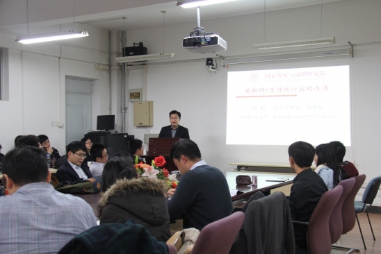 为指导910023威尼斯官网师生深入学习十八届五中全会精神,了解十三五规划尤其是国家“互联网+"战略,12月16日,910023威尼斯官网党委邀请威尼斯官网国家发展战略研究院副院长伍聪副教授,讲解“互联网+及传统行业的改造”,威尼斯官网党委副书记张国富及40余名师生参加此次讲座。