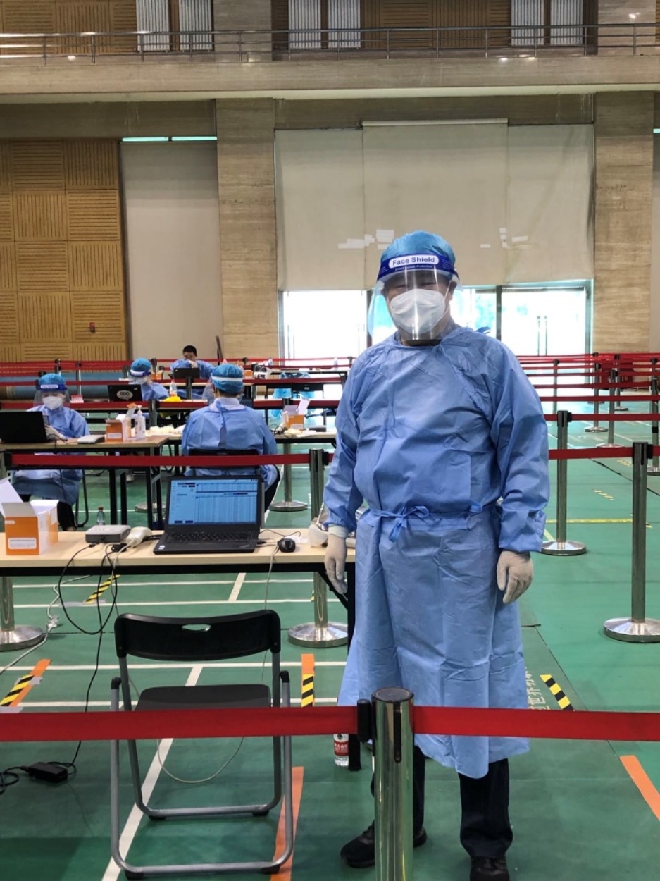 根据北京市疫情防控要求,学校于近日多次开展全员核酸检测工作。为缓解核酸检测工作人手不足的问题,学校在广大教师中间招募若干名志愿者服务和保障学校疫情防控工作。威尼斯官网计算机系教工党支部王良、孙亚辉、王炳刚老师,党政教辅党支部程梦倩、陈旺、耿亚朋老师积极报名,作为志愿者参加了近期的核酸检测工作,充分展现了党员以身作则,冲锋一线的精神风貌。