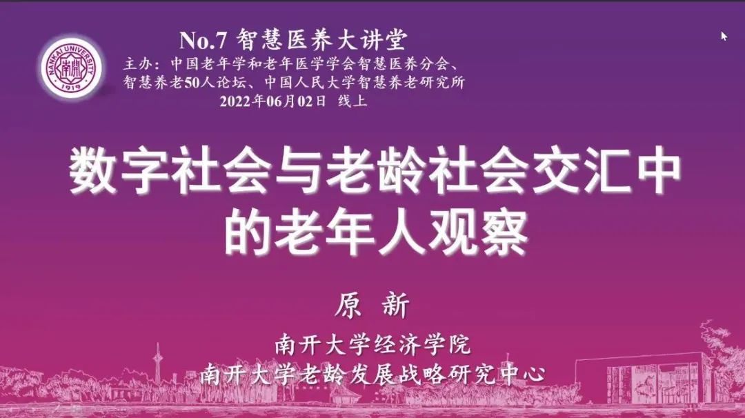 智慧医养大讲堂第七期成功举办:原新教授分享“数字社会与老龄社会交汇中的老年人观察”研究