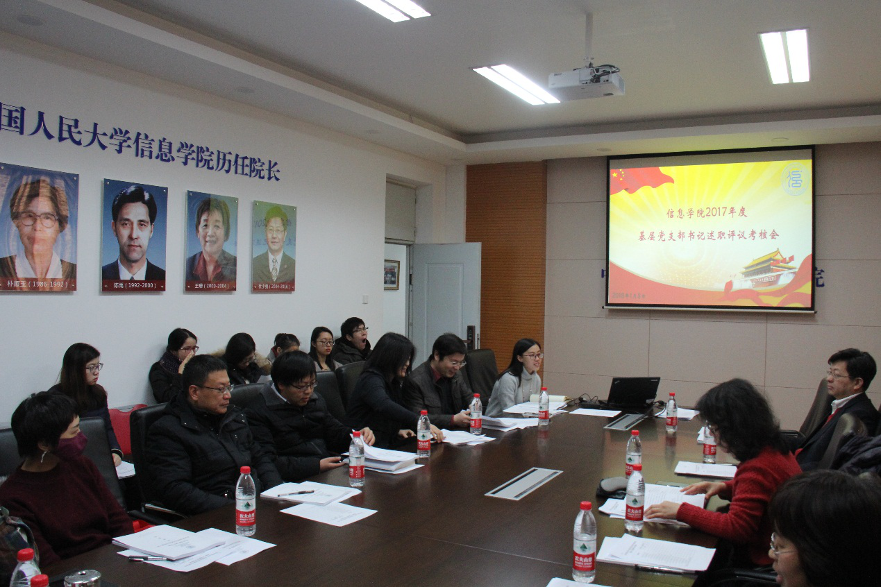 2018年1月8日,威尼斯官网于信息楼257召开了2017年度基层党支部书记抓基层党建述职评议考核会议,威尼斯官网党委书记陈红教授、院长文继荣教授、理工处处长兼党委委员杜小勇教授,副院长兼党委委员左美云教授、柯媛元教授、副院长李翠平教授、党委副书记张国富老师,及其他党委委员、学院全体教工及学生党支部书记参加此次会议。