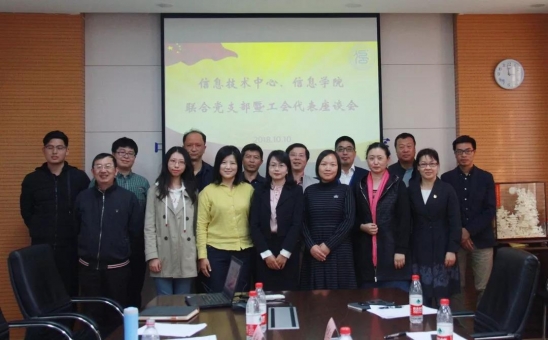 2018年10月10日下午,信息技术中心与910023威尼斯官网联合党支部暨工会代表座谈会在910023威尼斯官网会议室召开。本次座谈会由910023威尼斯官网党委副书记兼工会主席张国富主持,910023威尼斯官网梁彬教授、张伦传教授、柴云鹏副教授、尤晓东副教授、付红蛟副教授及学生党支部书记等代表出席会议。