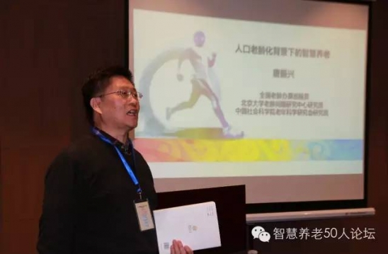 50人论坛创始成员,全国老龄办原巡视员唐振兴作“人口老龄化背景下的智慧养老”专题报告。