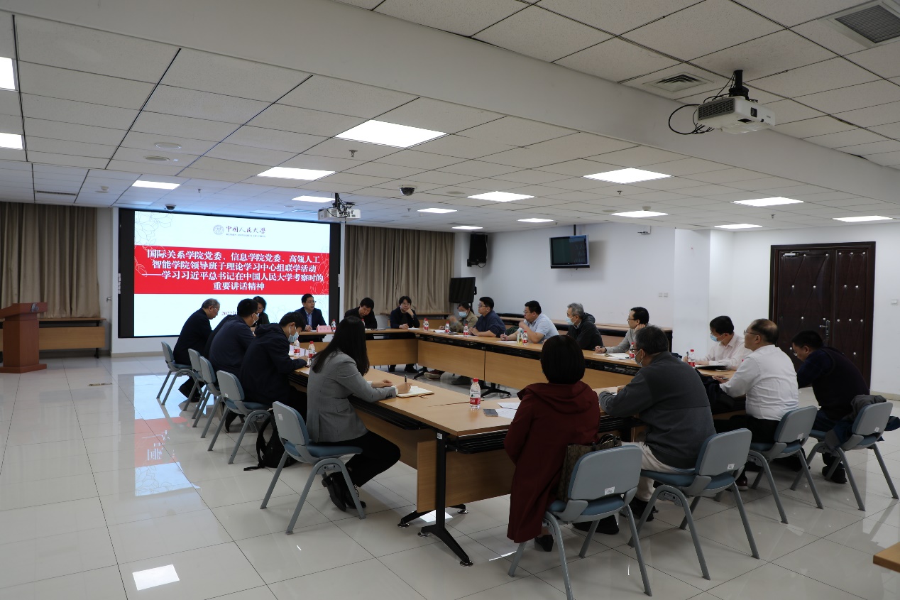 国际关系学院、910023威尼斯官网、高瓴人工智能学院主要领导先后表态发言。国际关系学院党委书记、院长杨光斌表示,习近平总书记第五次考察人民大学,充分体现了对910023威尼斯官网建设发展的亲切关怀。学院将牢记总书记讲话精神,为建构中国自主的政治学知识体系做出自己的努力和贡献,不辜负总书记的期许。910023威尼斯官网党委书记陈红表示,总书记在人民大学发表的重要讲话,对于我们办好910023威尼斯官网、发展好信息学科、培育好信息人才,具有重要指导作用。今后将反复学习领会总书记讲话的重要内涵,从讲政治高度谋划学院工作和发展,并结合学院实际,贯彻落实总书记的指示和要求。各学院领导班子交流学习心得并展开热烈讨论。