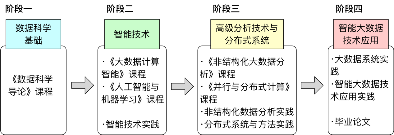 “智能大数据技术”荣誉辅修项目旨在通过一系列高水平课程、基于国家重点研发计划重点专项的研究实践和毕业论文环节,培养“智能大数据技术”领域的高水平人才,为研究生阶段的继续深造打下坚实的课程和实践基础。