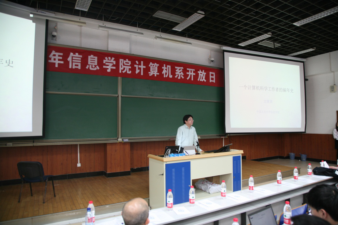 4 月6日,计算机系开放日活动顺利举办,计算机系40余位教师及200余名学生参加。活动由孙辉博士主持,文继荣副院长分享了自身感悟,讲述了从求学之初到最终选择计算机事业的心路历程。计算机系主任李翠萍教授向参会学生介绍了计算机学科相关专业的发展脉络,石文昌教授详细说明了信息安全专业的建设思路。随后,计算机系全部研究实验室进行了精彩的系统展示与海报讲解,与会师生分组进行面对面交流,更有毕业校友带来现身说法,让信院计算机系鲜明的学科特色深入人心。