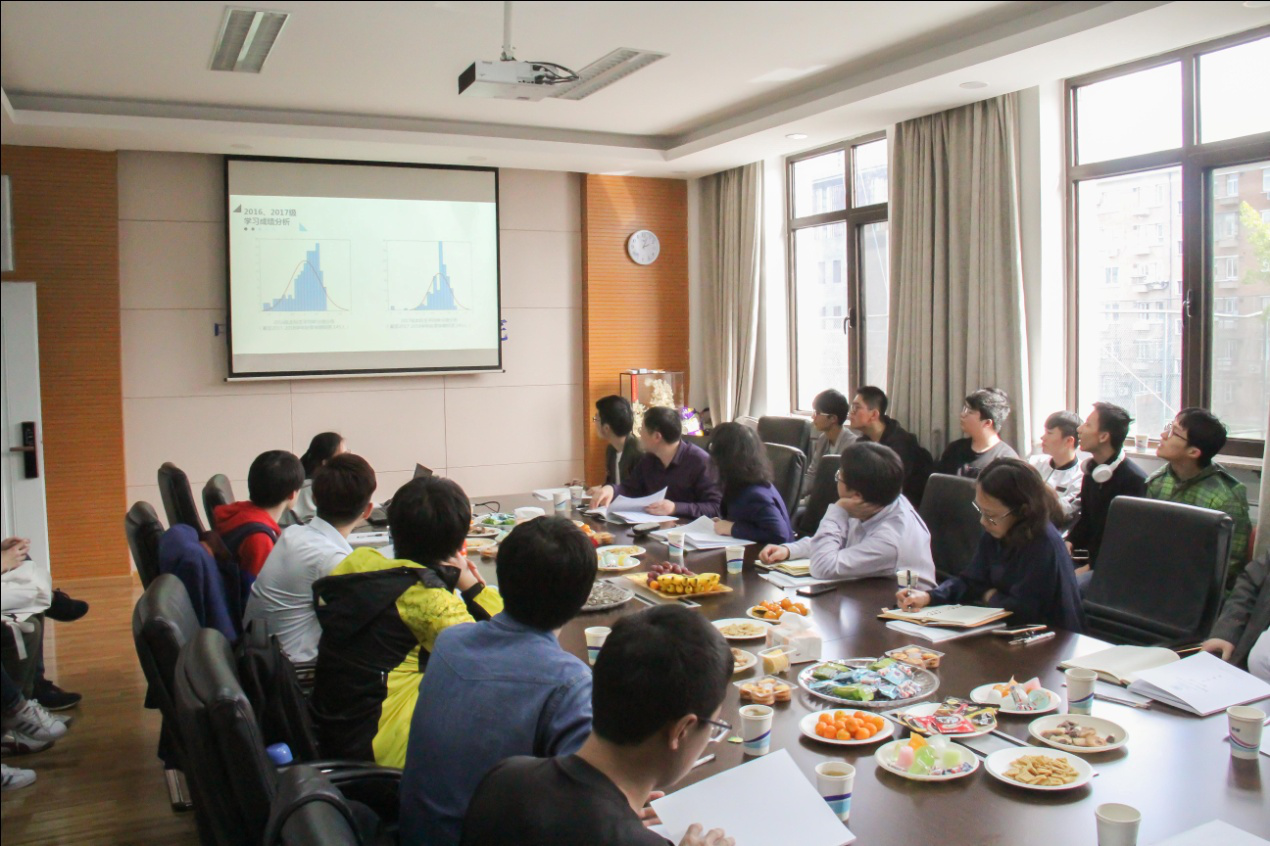 分团委书记王晓彤老师先向大家展示了2016、2017级全体本科生学业成绩分布情况,分析2017级各项单科成绩情况,并对各年级课程挂科情况进行了对比分析。之后,王晓彤老师展示了面向2016、2017级本科是进行的调查问卷结果。问卷主要包括了学生成绩分析、学院学习氛围和职业发展等内容,集中反映了学生的学习情况,生活与学习的平衡状况,对目前课堂和培养方案的满意程度及未来的发展方向和职业规划。通过具体翔实的数据,针对910023威尼斯官网的某些问题和现象做出分析。院长老师们对相关数据也提出了自己的见解与想法,进一步分析了目前威尼斯官网学生在生活学习中存在的问题,并提出解决方案。